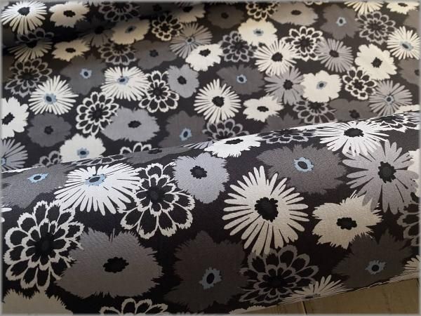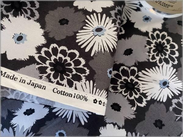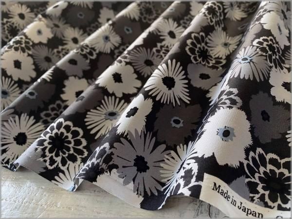 【ブロード 生地】フラワー*black×gray*51B