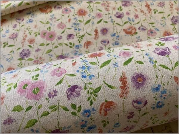 【綿麻シーチング 生地】水彩*ボタニカルフラワー*草花*linen*2A