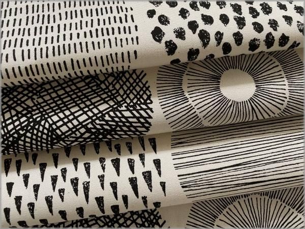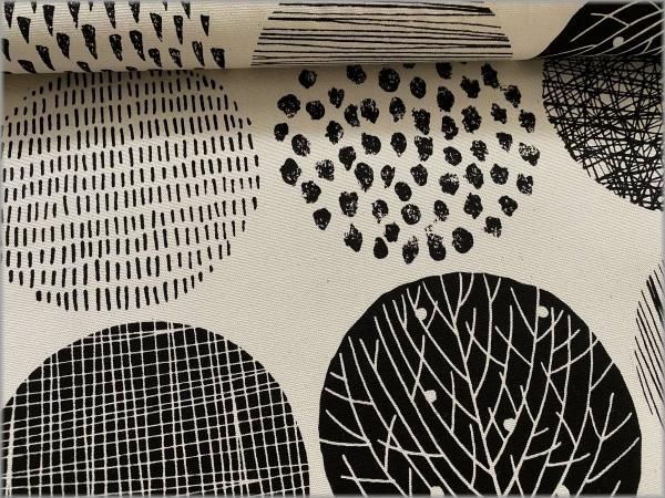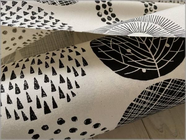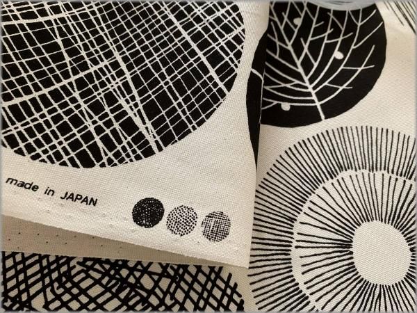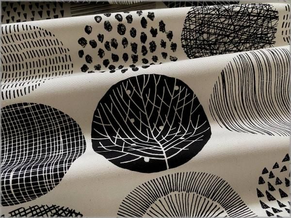 【オックス 生地】北欧*ボタニカルサークル*big*生成り*black*100A