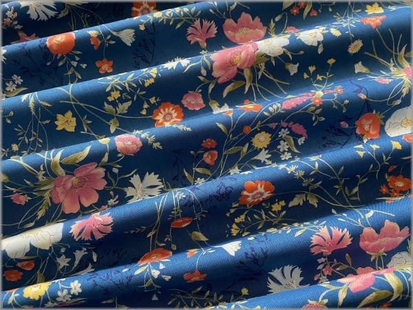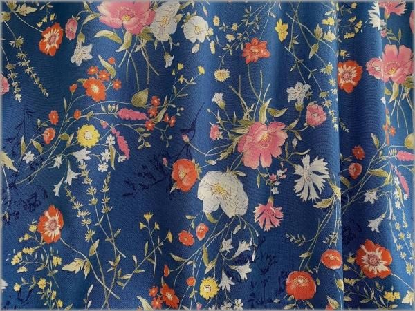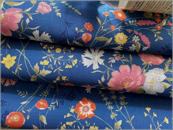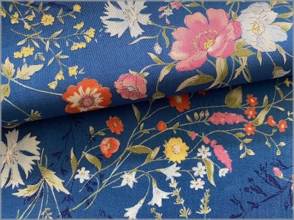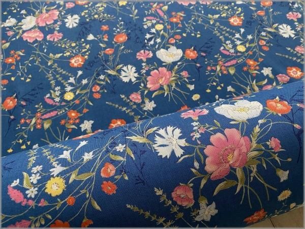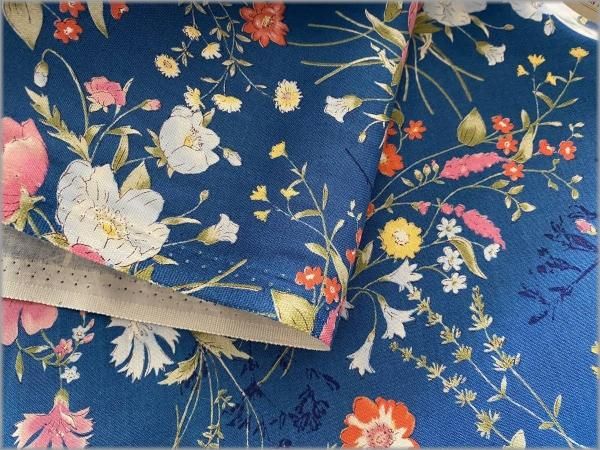 【シーチング 生地】草花*ボタニカル*和モダン*blue*1D