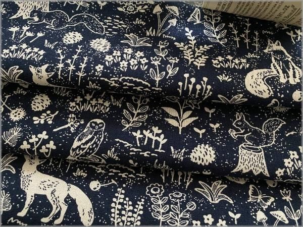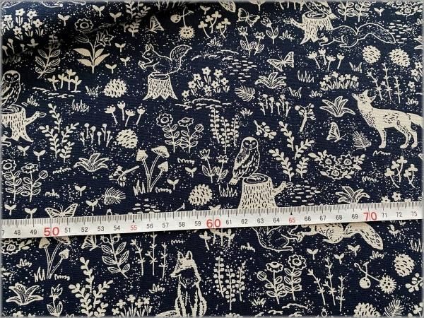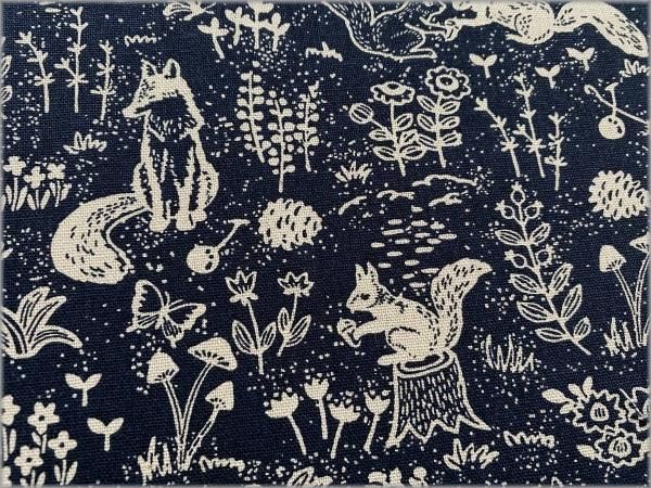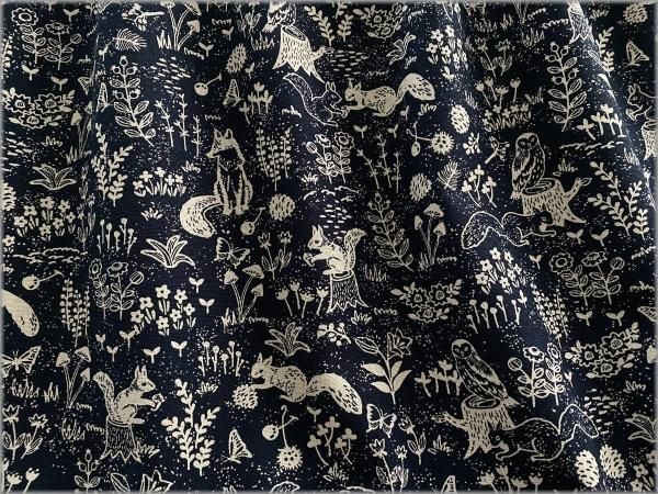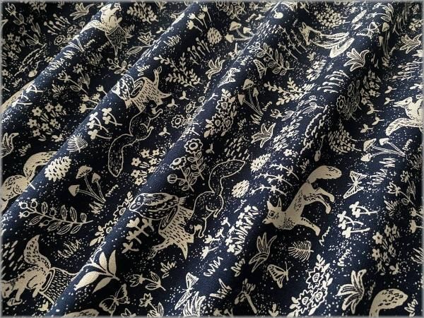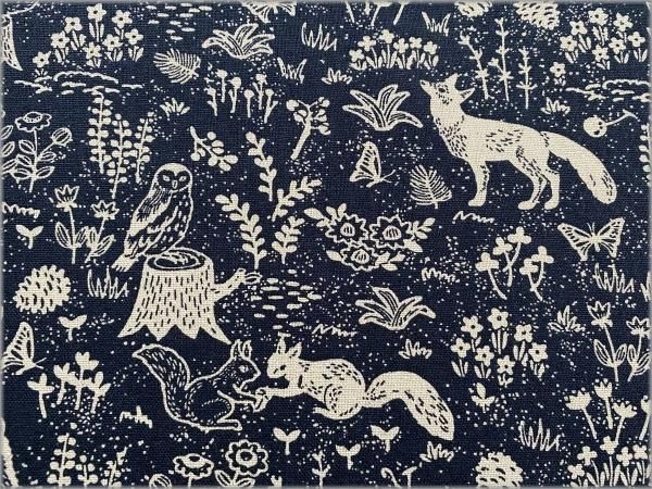 【綿麻キャンバス 生地】森の動物*navy linen*A4