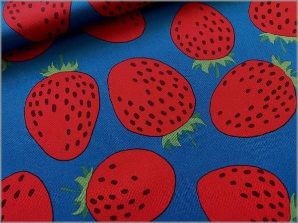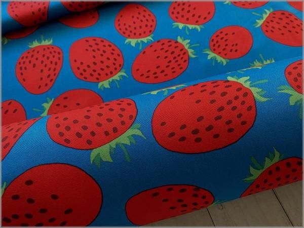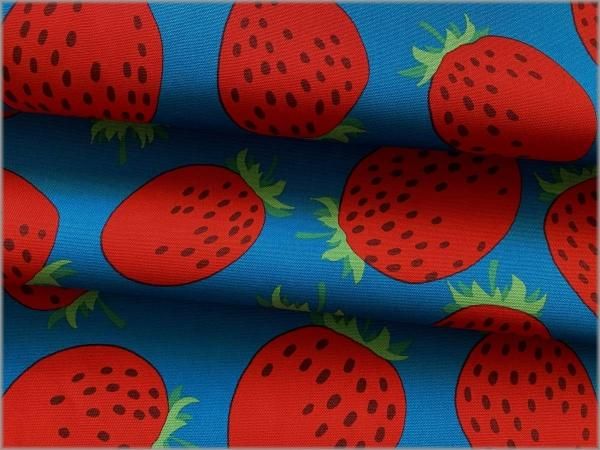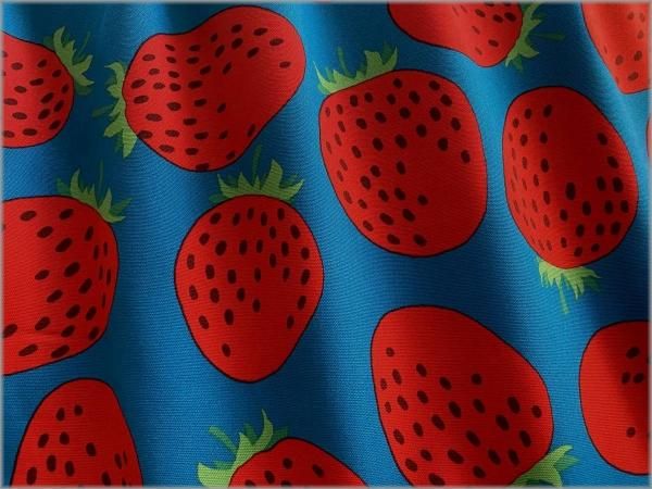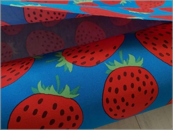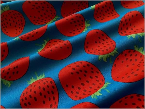 【オックス 生地】おおきなイチゴ*苺柄*turquoise*77C