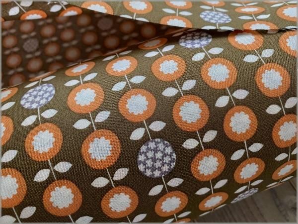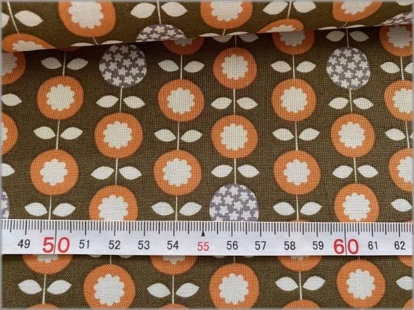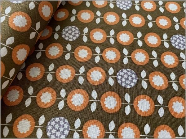 【シーチング 生地】レトロポップフラワー*花柄*mocha*1C