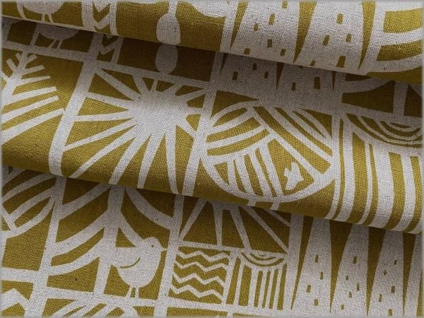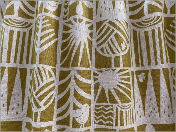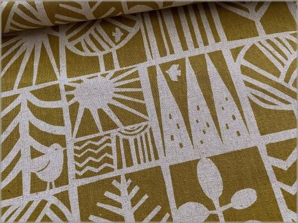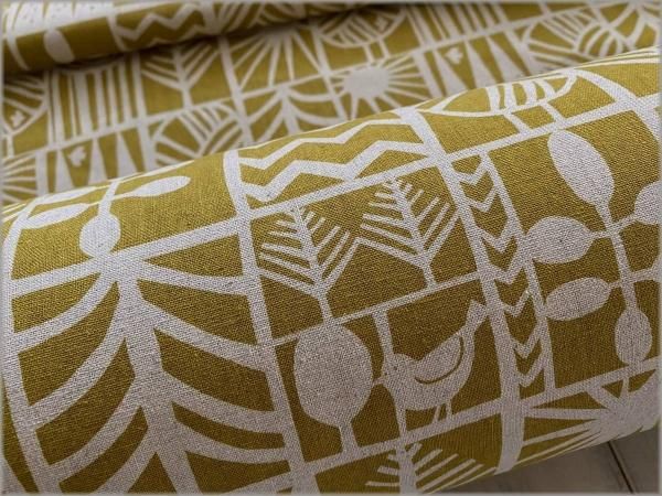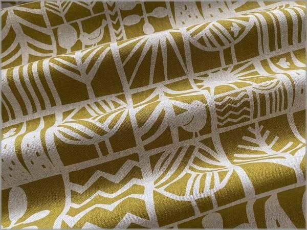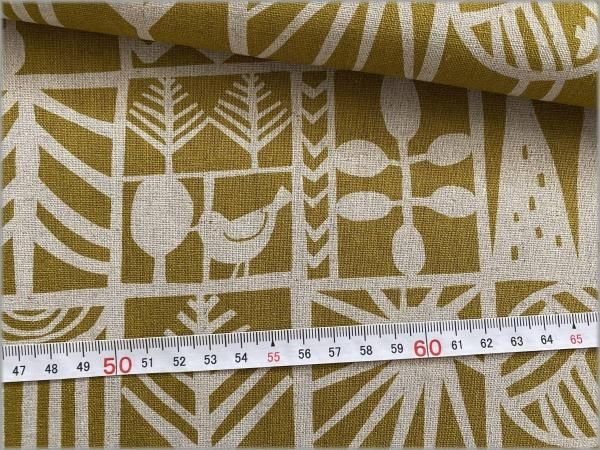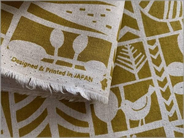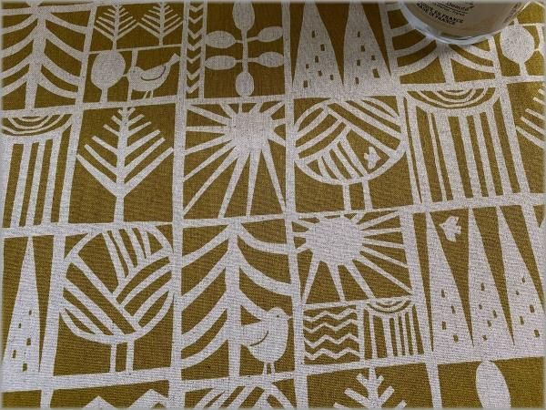 【綿麻キャンバス 生地】北欧柄*小鳥*ツリーブロック*mustard*2B