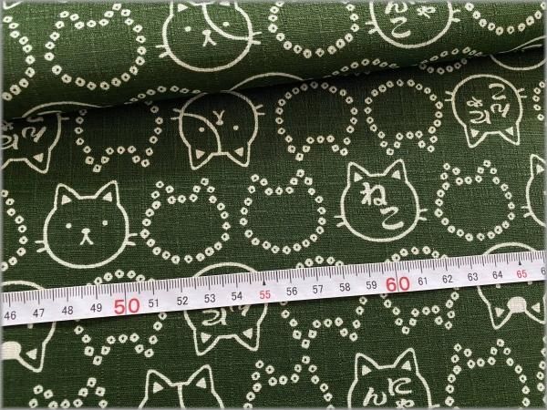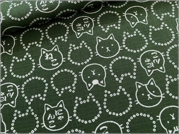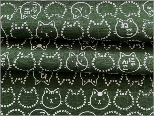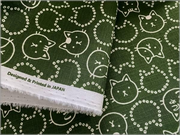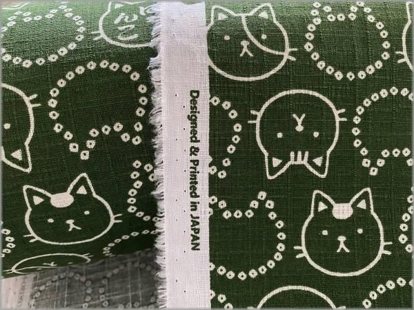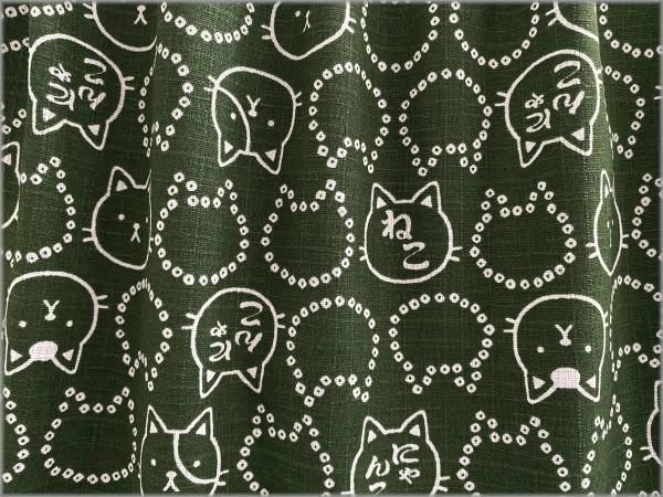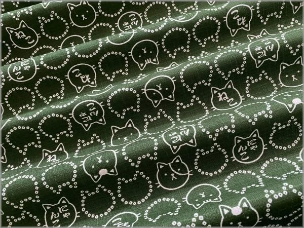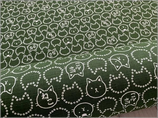 【ドビー 生地】和柄*猫*ネコ*豆絞り*フェイス*濃緑*2B