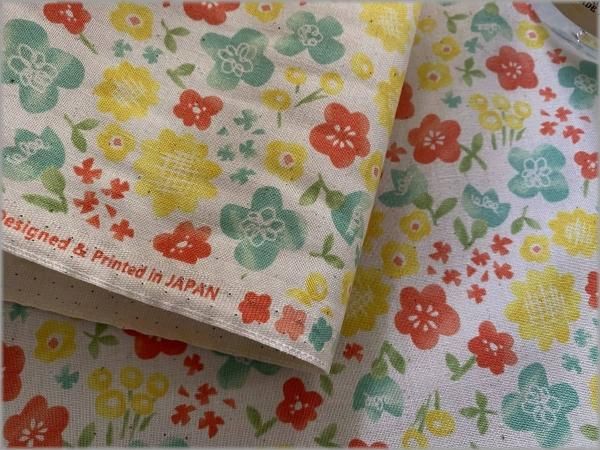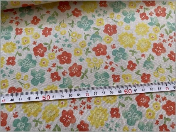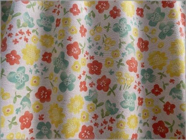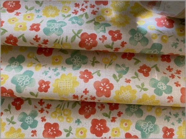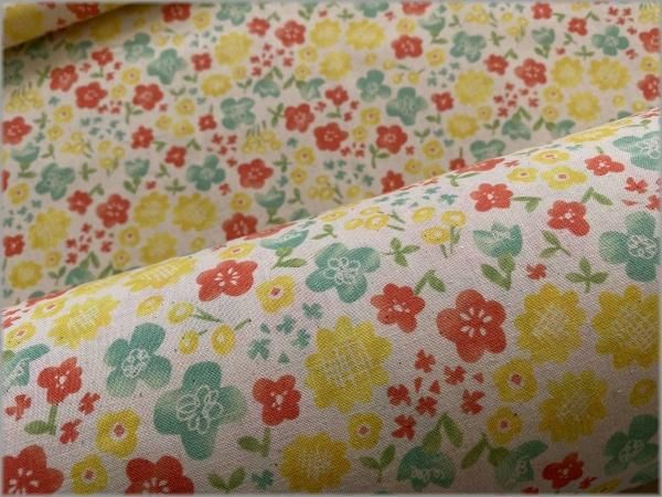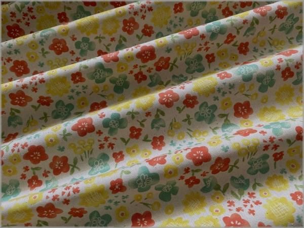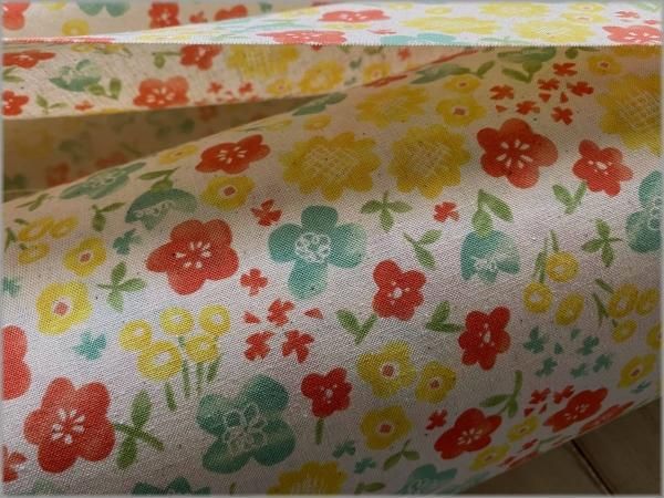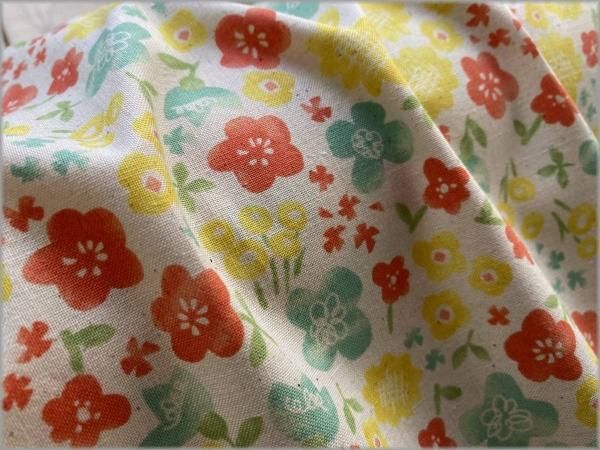 【シーチング 生地】水彩フラワー*レトロポップ*生成り*1A