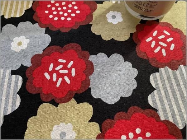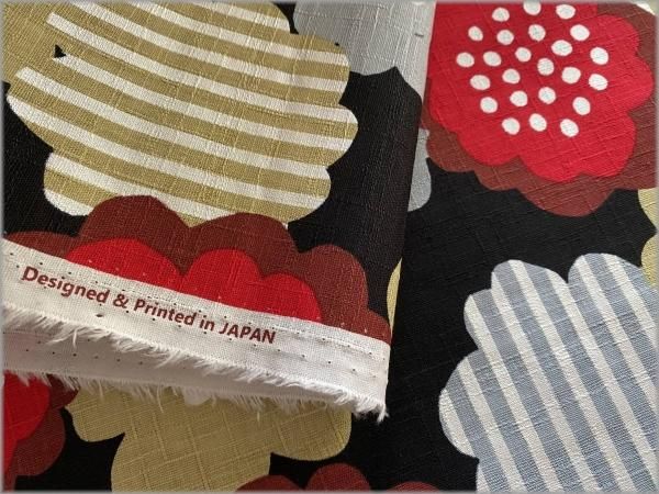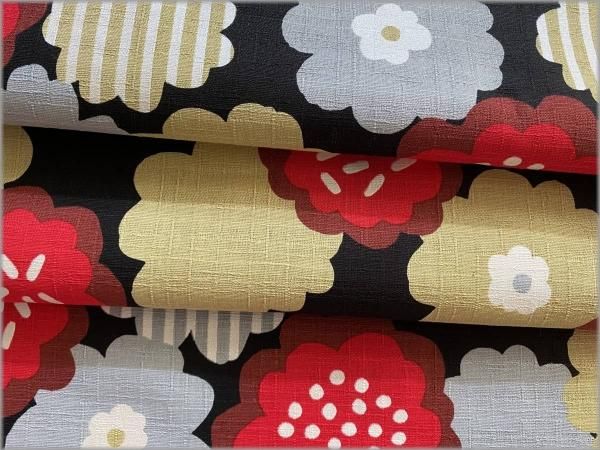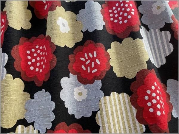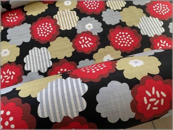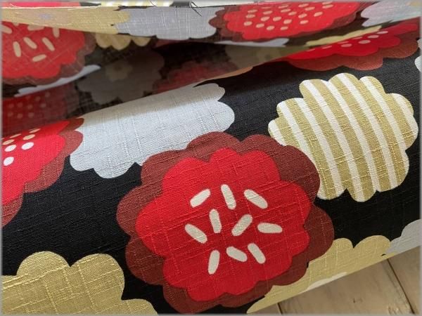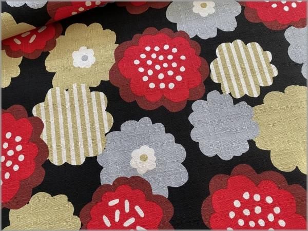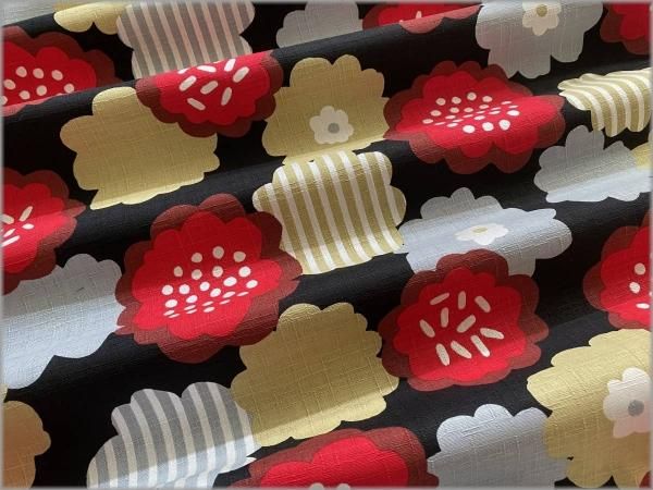 【ドビー 生地】和モダン*おおきな花柄*パール入り*black*2E