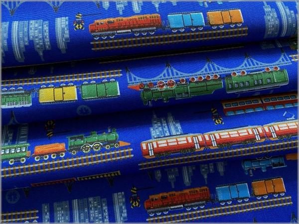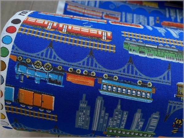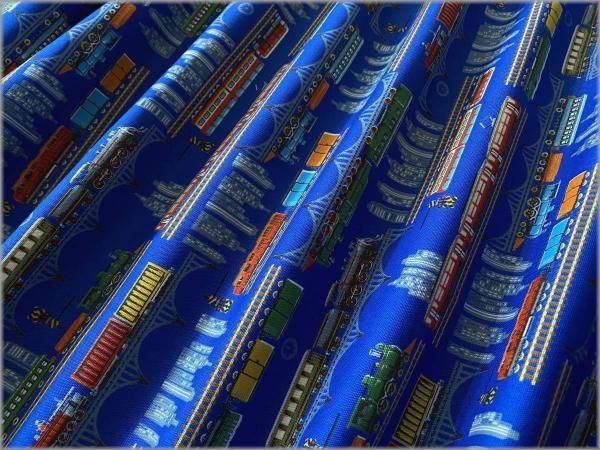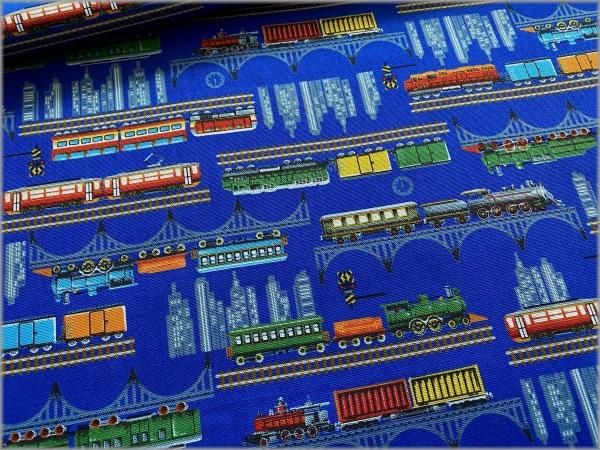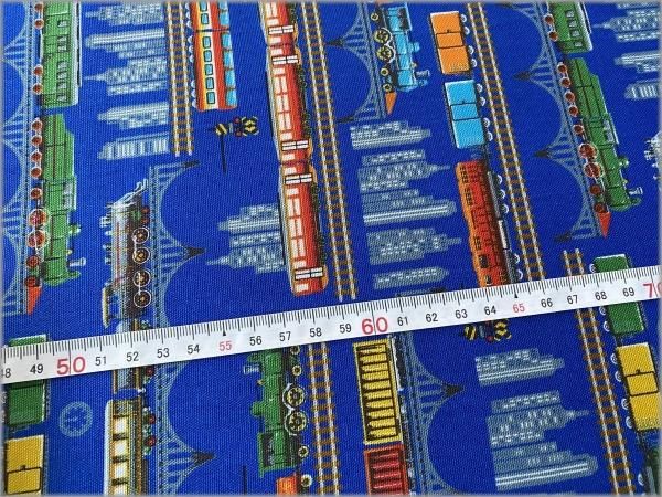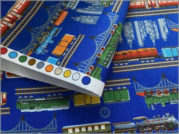 【オックス 生地】貨物列車*電車*生成り*royal blue*5B