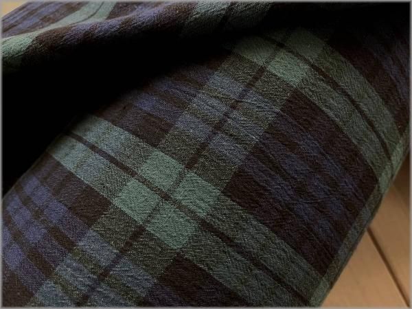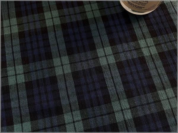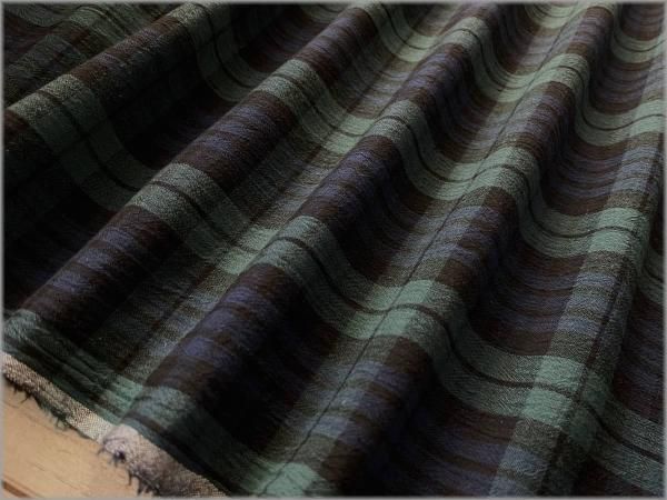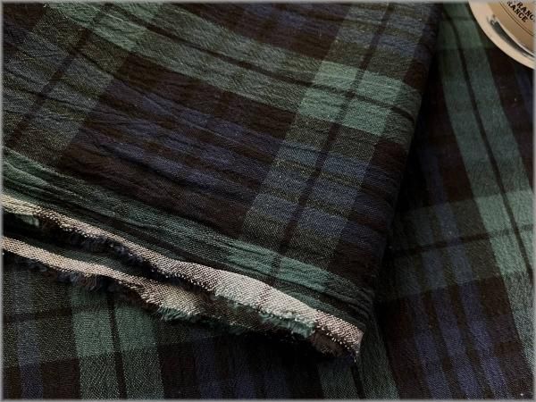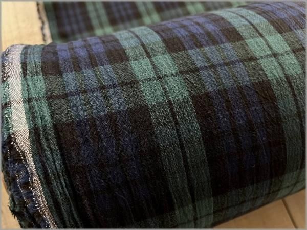 【綿麻先染め 生地】タータンチェック*ワッシャー*強撚*green*K36