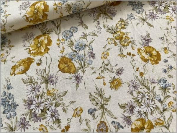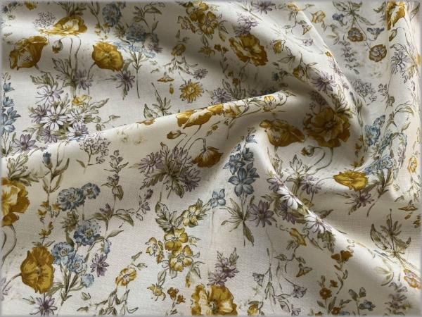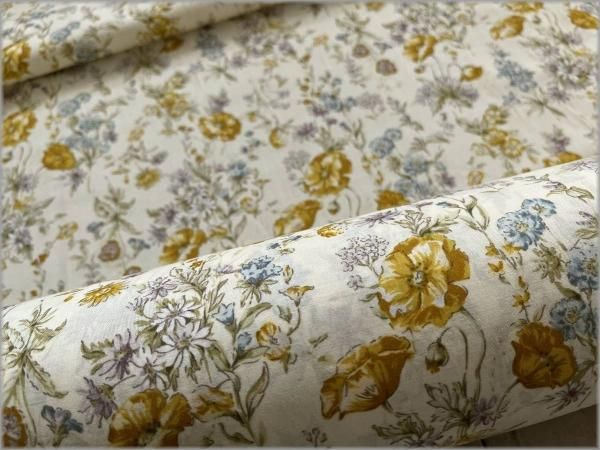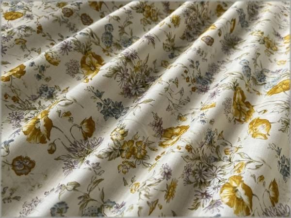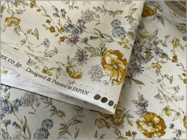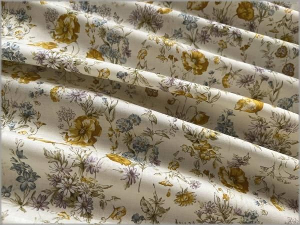 【60ローン 生地】ボタニカル草花*vanilla cream*54C