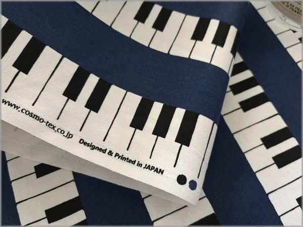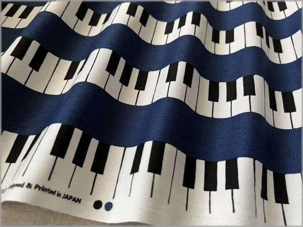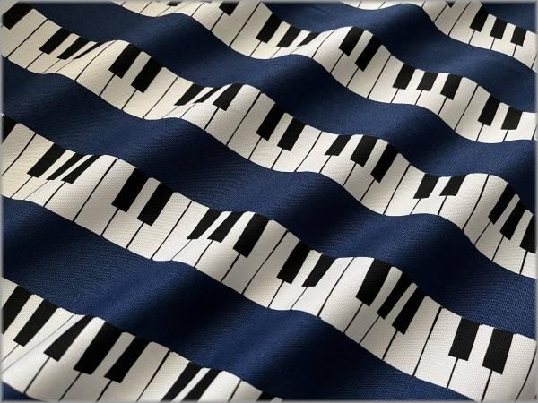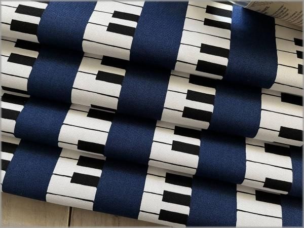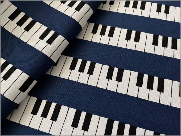 【オックス 生地】鍵盤ストライプ*ピアノ*navy*71E